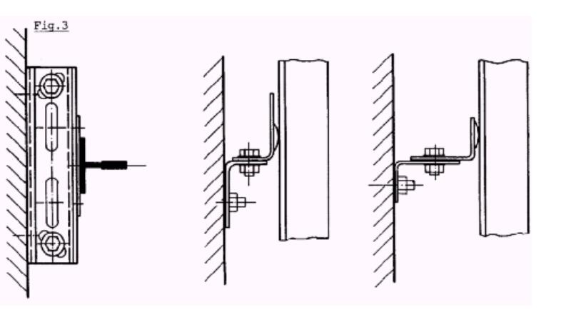 適宜于混凝土墻或?qū)嵭拇u墻,用沖擊鉆鉆孔后安裝金屬膨脹螺栓將導(dǎo)軌支架固定。