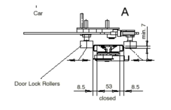 門刀與層門地坎、門鎖滾輪與轎廂地坎間隙應為5 – 10mm