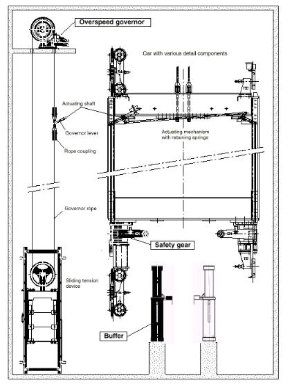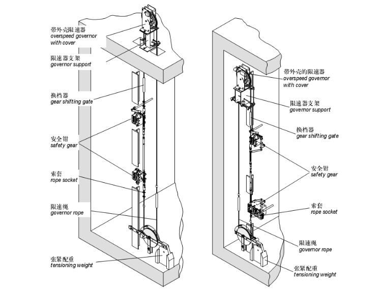 限速器與安全鉗作為電梯超速或失控時的聯(lián)動保護裝置。