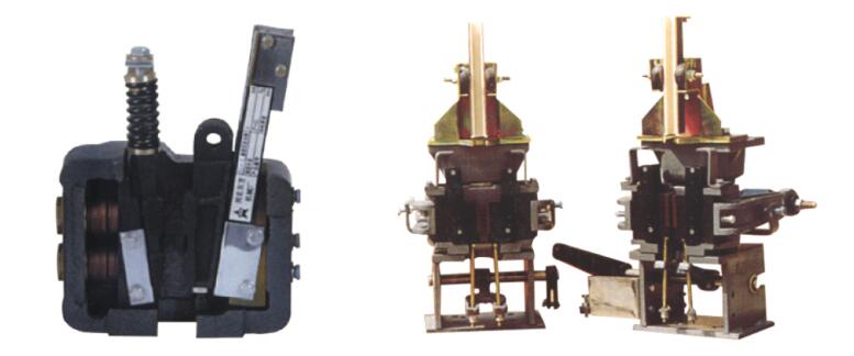 常見的有偏心式、單鍥塊式、滾子式及雙鍥塊式等,其中雙鍥塊式在作用過程中轎廂兩側(cè)受力均勻,對導(dǎo)軌的損傷較小,因此應(yīng)用最為廣泛,目前大都采用此種鉗塊型式。