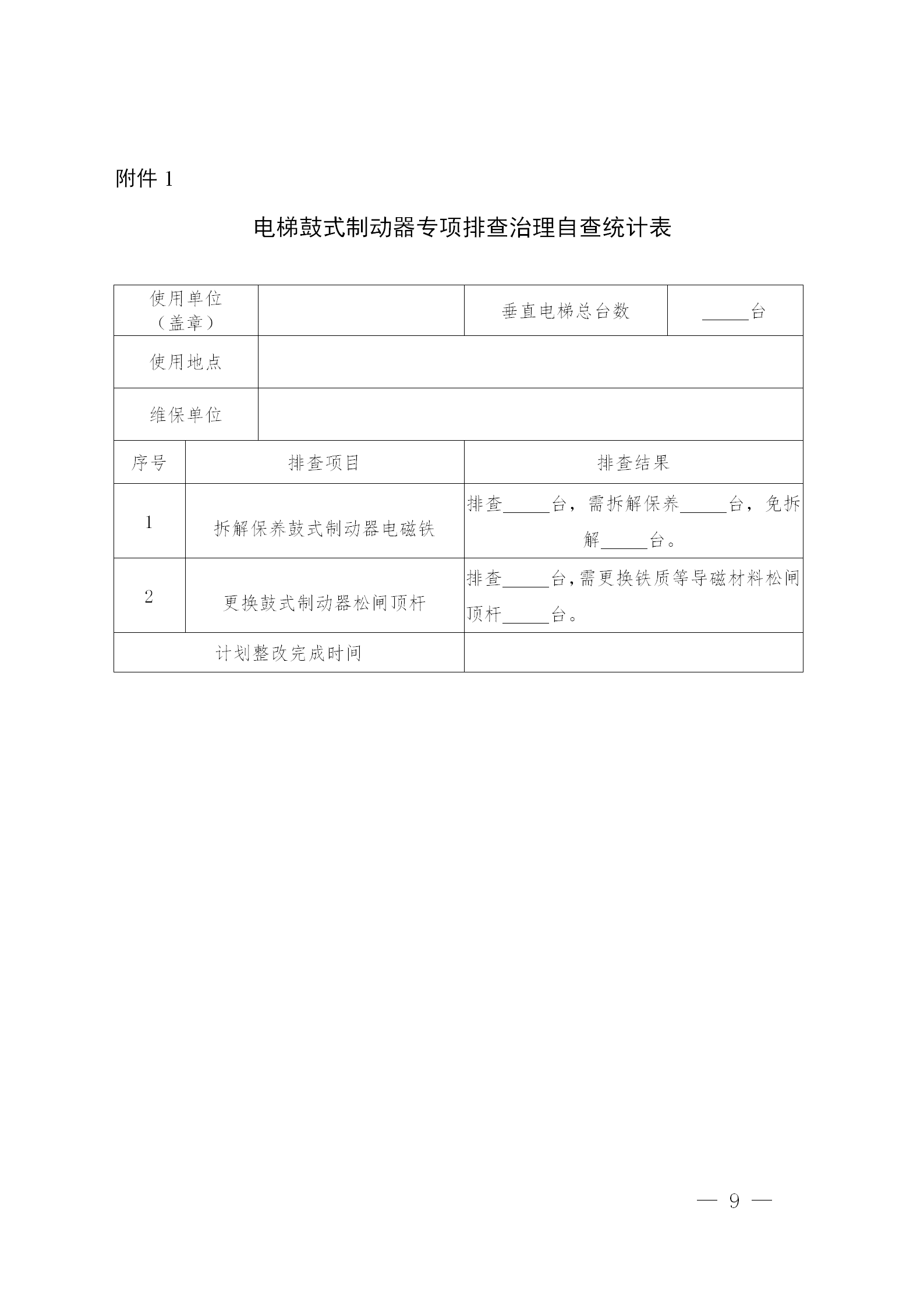 遠(yuǎn)大電梯鼓式制動器專項(xiàng)排查治理自查統(tǒng)計(jì)表
