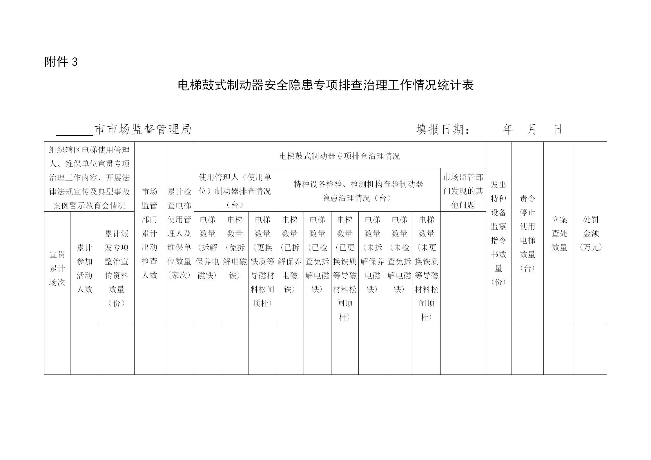 遠(yuǎn)大電梯鼓式制動(dòng)器安全隱患專項(xiàng)排查治理工作情況統(tǒng)計(jì)表