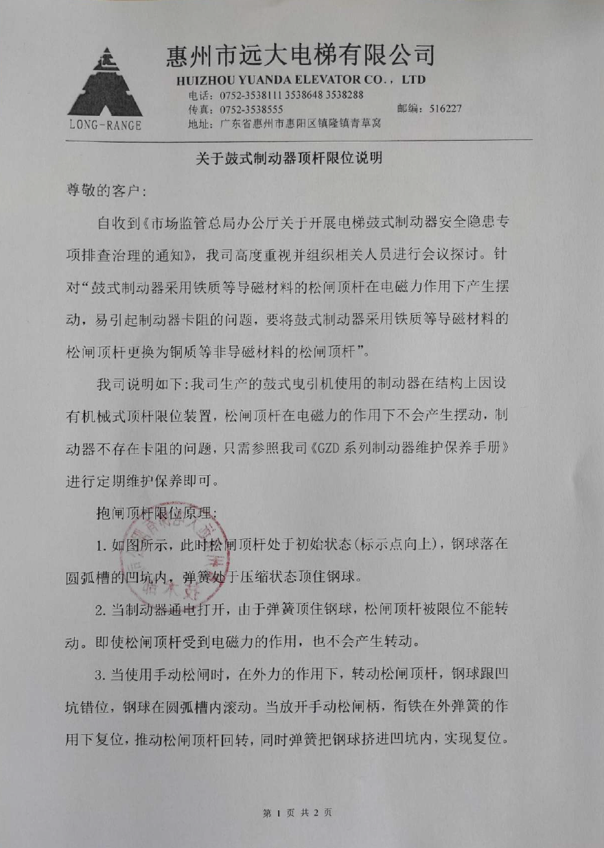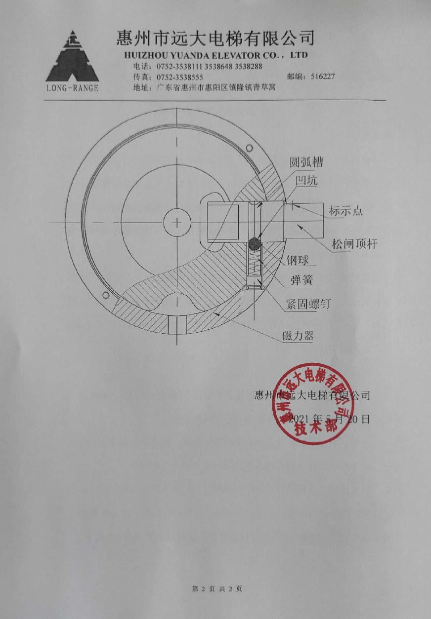 惠州遠大電梯鼓式抱閘頂桿說明20210617